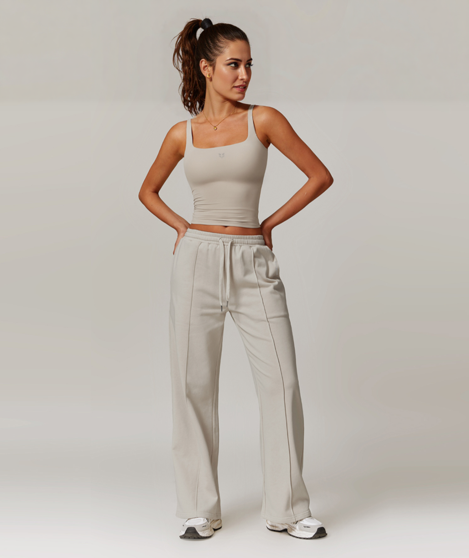 Designed for movement and built for style, the Milan Pant is your go-to essential for both workouts and everyday wear. Featuring a low-waist silhouette and full-length design, these sweatpants provide a flattering, modern fit without compromising on comfort. The breathable cotton-polyester blend offers lightweight flexibility, while the adjustable drawstring closure ensures a secure and personalized fit.